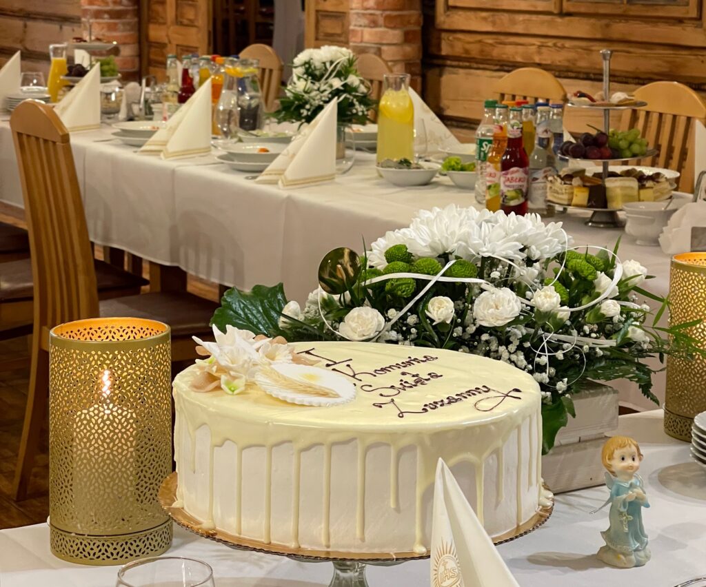 Jeśli szukasz miejsca na chrzciny w Myślenicach i okolicach, u nas znajdziesz idealne warunki. Restauracja Grzybek w Stróży to idealne miejsce na przyjęcie z okazji Chrztu Świętego w eleganckiej i rodzinnej atmosferze. Oferujemy przestronną salę na chrzciny, stylowe dekoracje oraz dopasowane menu na chrzciny, które zadowoli wszystkich gości. Nasza profesjonalna obsługa zadba o każdy szczegół, aby uroczystość była perfekcyjnie zorganizowana i bezstresowa dla rodziców.